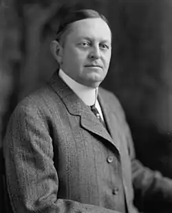 He was a candidate for the Democratic presidential nomination in 1912 and had some strength at the national convention among southern delegates but could not compete with Champ Clark and Woodrow Wilson. At the convention that year in Baltimore, Wilson's managers offered Underwood the vice-presidential nomination, which he declined.[11] Following the election, Underwood supported the progressive reforms of Wilson's first term,[12] using his position as Chairman of the House Ways and Means Committee to manage legislation and maintain party discipline. In return, Wilson granted him considerable control over patronage and appointed Albert S. Burleson Postmaster-General upon Underwood's recommendation.[13] The Revenue Act of 1913 is also known as the Underwood Tariff Act or Underwood-Simmons Act in recognition of Underwood's role in writing and managing the bill as Chairman of the House Ways and Means Committee. He stood with a small minority of House members in opposition to the President when he voted to maintain an exemption from Panama Canal tolls for American ships traveling between American ports, despite British protests that the policy violated the Hay–Pauncefote Treaty.[14]