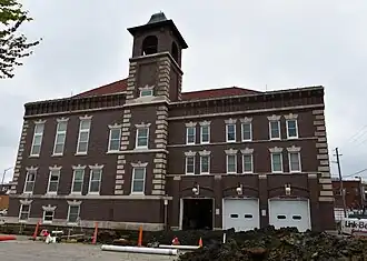 The Oskaloosa Fire Station is a historic building located in Oskaloosa, Iowa, United States. It was designed by Des Moines architect Frank E. Wetherell, an Oskaloosa native, in the Renaissance Revival style.[2] It was originally designed along with the adjoining city hall in 1905. The buildings were designed for phased construction, and the city council decided to build the fire station first. Completed in 1908, it is a three-story brick building with a 4½-story bell tower. The fire station was individually listed on the National Register of Historic Places in 1991.[1] Previously it had been included as a contributing property in the Oskaloosa City Square Commercial Historic District.[3]