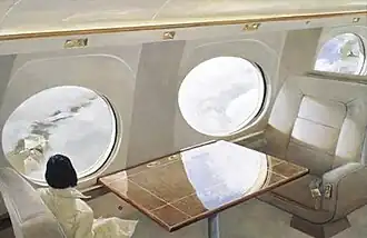 Otherworld is a 2002 painting by American artist Andrew Wyeth.[1] The painting depicts Andrew Wyeth's wife and manager, Betsy Wyeth, looking out the window of a private jet. Andrew had originally titled the painting Betsy's World in reference to his famous painting Christina's World, but it was renamed Otherworld by Betsy. Visible through windows of the plane are two places commonly featured in Andrew's work: Out the left window is the Kuerner Farm in Chadds Ford, Pennsylvania and out the right window is the Olson House in Cushing, Maine.[2][3] The painting's content is unusual for Wyeth, as he rarely depicted twentieth century technology or settings.
