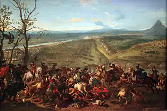 This period of renewed assertiveness came to a calamitous end in 1683 when Grand Vizier Kara Mustafa Pasha led a huge army to attempt a second Ottoman siege of Vienna in the Great Turkish War of 1683–1699. The final assault being fatally delayed, the Ottoman forces were swept away by allied Habsburg, German, and Polish forces spearheaded by the Polish king John III Sobieski at the Battle of Vienna. The alliance of the Holy League pressed home the advantage of the defeat at Vienna, culminating in the Treaty of Karlowitz (26 January 1699), which ended the Great Turkish War.[104] The Ottomans surrendered control of significant territories, many permanently.[105] Mustafa II (1695–1703) led the counterattack of 1695–1696 against the Habsburgs in Hungary, but was undone at the disastrous defeat at Zenta (in modern Serbia), 11 September 1697.[106]