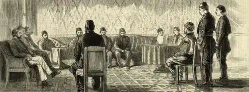 In the late 19th century, the Ottoman legal system saw substantial reform. This process of legal modernisation began with the Edict of Gülhane of 1839.[197] These reforms included the "fair and public trial[s] of all accused regardless of religion", the creation of a system of "separate competences, religious and civil", and the validation of testimony on non-Muslims.[198] Specific land codes (1858), civil codes (1869–1876), and a code of civil procedure also were enacted.[198]
