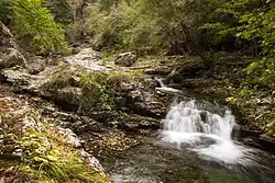 Several small springs come together as one stream just below the shrine to Our Lady of the Fountains.