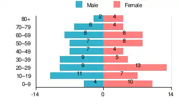 Total 0–9 10–19 20–29 30–39 40–49 50–59 60–69 70–79 80 +