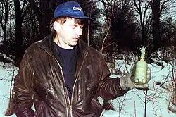 PROM-1 in the hands of a deminer. The safety clip is in place to prevent detonation.