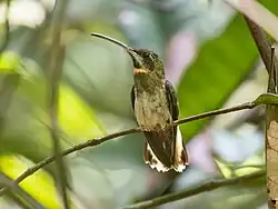 The pale-tailed barbthroat (Threnetes leucurus) is a species of hummingbird in the family Trochilidae. It is found throughout much of the Amazon Basin from the eastern Andean foothills to the Atlantic Ocean.[3]