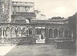 The cloister of the parish church in a historical photograph