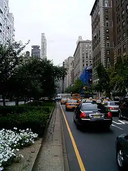 Park Avenue is a boulevard in New York City[5] that carries north and southbound traffic in the boroughs of Manhattan and the Bronx. For most of the road's length in Manhattan, it runs parallel to Madison Avenue to the west and Lexington Avenue to the east. Park Avenue's entire length was formerly called Fourth Avenue; the title still applies to the section between Cooper Square and 14th Street.[6] The avenue is called Union Square East between 14th and 17th streets, and Park Avenue South between 17th and 32nd streets.