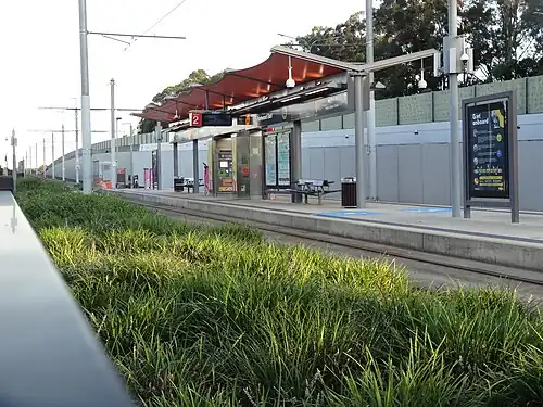Parkwood light rail station is located on the corner of Napper Road and Smith Street Motorway in the Gold Coast suburb of Parkwood. The station is part of the Gold Coast's G:link light rail network and provides a 'park and ride' facilities for up to 1000 vehicles.[1] Parkwood light rail station opened for service on 17 December 2017 when the extension to Helensvale was completed.