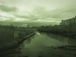 A photo entitled "After Fall" depicts a bleak landscape in which the "world is poisoned as that river is."