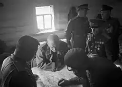 Pavel Ivanovich Batov (Russian: Па́вел Ива́нович Ба́тов; June 1 [O.S. May 20] 1897 – April 19, 1985)[1] was a senior Red Army general during the Second World War and afterwards, twice Hero of the Soviet Union. Batov fought in World War I, where he was awarded the Cross of St. George twice. After being wounded in 1917, he was sent to a school in Petrograd and joined the Bolsheviks. He fought in the Russian Civil War and became an advisor with the XII International Brigade during the Spanish Civil War. During World War II, Batov commanded the 51st Army in the Crimea. In 1942, he became the commander of the 3rd Army and then the 4th Tank Army, which was renamed the 65th Army. Postwar, Batov commanded the Carpathian Military District.[2]