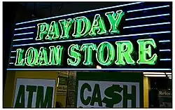 A payday loan (also called a payday advance, salary loan, payroll loan, small dollar loan, short term, or cash advance loan) is a small, short-term unsecured loan, "regardless of whether repayment of loans is linked to a borrower's payday."[1][2][3] The loans are also sometimes referred to as "cash advances," though that term can also refer to cash provided against a prearranged line of credit such as a credit card. Payday advance loans rely on the consumer having previous payroll and employment records. Legislation regarding payday loans varies widely between different countries and, within the United States, between different states.[4]