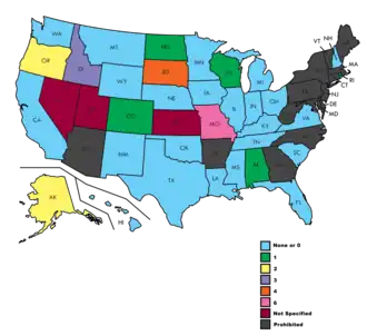 Rolling over debt is a process in which the borrower extends the length of their debt into the next period, generally with a fee while still accruing interest.[53] An empirical study published in The Journal of Consumer Affairs found that low income individuals who reside in states that permit three or more rollovers were more likely to utilize payday lenders and pawnshops for loans. The study also found that higher income individuals are more likely to use payday lenders in areas that permit rollovers. The article argues that payday loan rollovers lead low income individuals into a debt-cycle where they will need to borrow additional funds to pay the fees associated with the debt rollover.[54] Of the states that allow payday lending, 22 states do not allow borrowers to rollover their debt and only three states allow unlimited rollovers.[27] States that allow unlimited rollovers leave the number of rollovers allowed up to the individual businesses.[41]