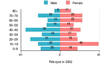 Figure 1. Population pyramid of village in 2002 – by age group and sex[1]