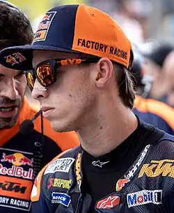 Pedro Acosta Sánchez (born 25 May 2004) is a Spanish Grand Prix motorcycle racer, competing in MotoGP for the Red Bull KTM Factory Racing team.[1] Acosta took his maiden win in only his second Moto3 race at the 2021 Doha motorcycle Grand Prix after starting from the pitlane as a penalty for a disciplinary infringement that originated in free practice. In the same season, he won the 2021 Moto3 World Championship becoming the first rookie champion since Loris Capirossi in 1990,[2] and the second youngest ever champion, just one day older than Capirossi was at the time of winning. In 2023, Acosta won the Moto2 world championship with 2 races to go. Acosta is also a champion of the Red Bull MotoGP Rookies Cup, having won the title in 2020.