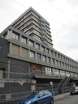 Zodiac Court in West Croydon, the filming location of Mark and Jeremy's flat. It is called 'Apollo House' in the series.