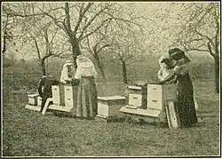 In May 1914, the first official meeting of the Woman's National Agricultural and Horticultural Association, later known as the Woman's National Farm & Garden Association (WNF&GA) was held at the Pennsylvania School of Horticulture for Women. Its organizers included Jane Bowne Haines, Louisa Boyd Yeomans King, Elizabeth Leighton Lee, Elizabeth Price Martin and Hilda Loines. Once again, the organizers were inspired by international efforts, in this case the British Women's Farm and Garden Union, which had been established in 1899.[23][24] The association's mission was to "promote agricultural and horticultural interests among women, and to further such interests throughout the country."[25] The first annual conference of the Woman's National Agricultural and Horticultural Association included a number of speakers, including King, of Alma, Mich., the president of the association; Miss Martha Van Rensselaer, director of home economics at Cornell University; and Mrs. J. Willis Martin of Philadelphia, president of the Garden Club of America, among others.[26]