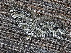 The subspecies Perizoma norvegica, from Norway, is as small as P. m. ericetata but otherwise forms a strong contrast to it, being more weakly marked than the name-type. At last P. m. ab. monticola Strand is a rare aberration, with the median area not darkened at all, but only indicated by the lines which limit it. Mentioned from Norway and Scotland.[6]