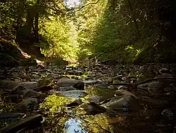 In the 1970s, there was a plan to dam and flood the valley, but that was opposed by the general public. Then a plan by the county to develop the park with facilities such as campgrounds, visitor center, picnic grounds, trails and interpretive programs was also opposed and cancelled.[1] The park is developed with basic campsites and trails developed originally by Scouts, plus the original logging roads now left as fire roads.