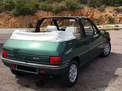 The Peugeot 205 is a four-passenger, front-engine, supermini (B-segment) car manufactured and marketed by Peugeot over a sixteen-year production run from 1983 to 1999, over a single generation. Developed from Projet M24 and introduced on 25 February 1983, the 205 replaced the Peugeot 104 and the Talbot Samba, using major elements from their design.[5] It won What Car?'s Car of the Year for 1984. It was also declared "car of the decade" by CAR Magazine in 1990.[5] Peugeot stopped marketing the 205 in 1999 in favor of its new front-engined 206. The 106, which was introduced in 1991, effectively took over as Peugeot's smaller front-engined model in their lineup. The latter was developed as a close sibling of the Citroën AX, sharing many components and a platform that later evolved into the Citroën Saxo.