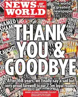 - ^ Robinson, James (7 July 2011). "News of the World to close as Rupert Murdoch acts to limit fallout". The Guardian. Retrieved 28 August 2011.