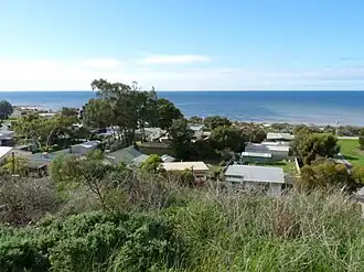 Pine Point (formerly Muloowurtie) is a locality in the Australian state of South Australia south of Ardrossan on the east side of Yorke Peninsula adjacent to Gulf St Vincent. It was surveyed as a government town in 1883 and proclaimed under the name of Muloowurtie on 24 January 1884.[2] The name was changed to Pine Point in 1940. The boundaries of the locality were created in May 1999 in respect to the "long established name" and includes both "the Pine Point Shack Site" and " the Government Town of Pine Point."[3][7]