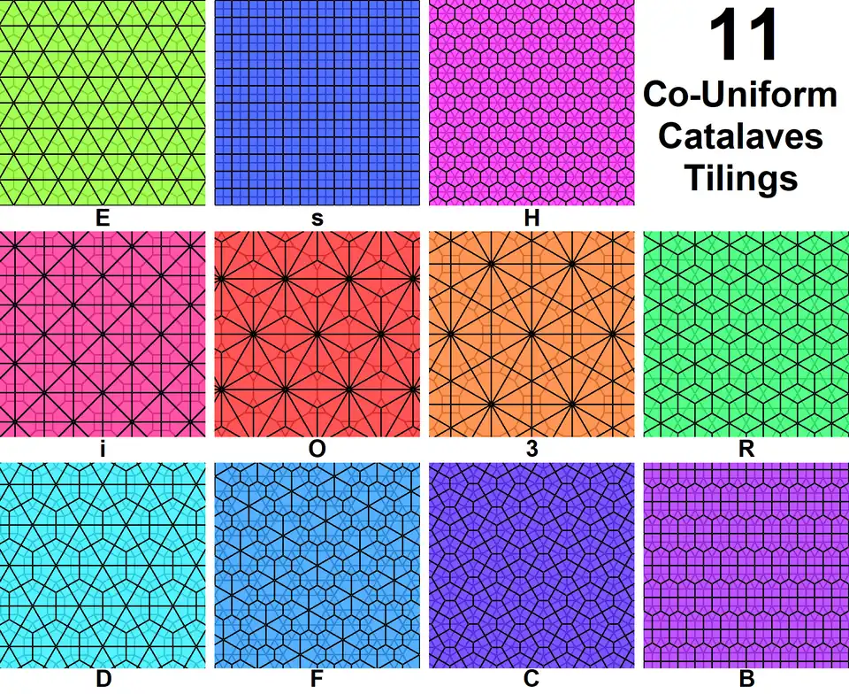 From onward, there are no uniform n tilings with n vertex types, or no uniform n duals with n distinct (semi)planigons.[9]