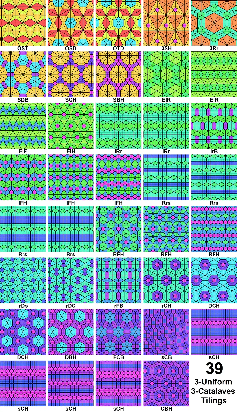 - ^ "THE BIG LIST SYSTEM OF TILINGS OF REGULAR POLYGONS". THE BIG LIST SYSTEM OF TILINGS OF REGULAR POLYGONS. Retrieved 2019-08-30.
