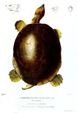 The Magdalena River turtle or Rio Magdalena river turtle (Podocnemis lewyana) is a species of turtle in the family Podocnemididae,[3] which diverged from other turtles in the Cretaceous Period, 100 million years ago.[4] It is endemic to northern Colombia, where its home range consists of the Sinú, San Jorge, Cauca, and Magdalena river basins.[5]