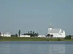 The village is located on the edge of the Pokemouche River, 7 kilometres (4.3 mi) west of the Gulf of Saint Lawrence.