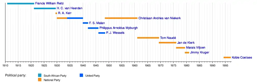 Kobie CoetseeJimmy KrugerMarais ViljoenJan de KlerkTom NaudéF. S. MalanHarry van HeerdenFrancis William Reitz