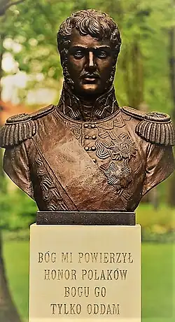 Prince Józef Poniatowski Monument (Polish: Pomnik księcia Józefa Poniatowskiego) is a sculpture in Warsaw, Poland, within the neighbourhood of Ujazdów in the Downtown district. It has a form of a bronze bust of Józef Poniatowski, an 18th-century general, minister of war, commander-in-chief of the Army of the Duchy of Warsaw, and the Marshal of the French Empire during the Napoleonic Wars. The sculpture was designed by Paweł Pietrusiński, and unveiled on 7 May 2023. It is placed at the back of the Myślewice Palace in the Royal Baths Park.