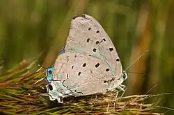 - ^ a b Martins, Ananda Regina Pereira; Duarte, Marcelo; Robbins, Robert K. (2019). "Evolution of male secondary sexual organs in hairstreak butterflies (Lepidoptera, Lycaenidae)". Cladistics. 35: 173–197. doi:10.1111/cla.12355. Retrieved 2024-02-22.