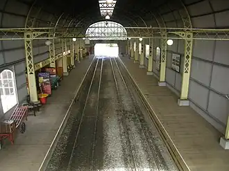 The older station was across from the western end of Orr Street, Queenstown and the Empire Hotel, without an extensive covering roof. It was covered in the 1920s.[2]