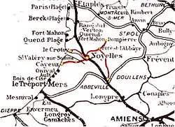 Forest-l'Abbaye was where the line from Noyelles joined the line between Abbeville and Dompierre-sur-Authie. It was 11 kilometres (6.8 mi) from Noyelles.