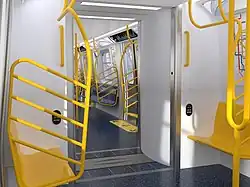The design of the R262 subway cars is based on the specifications of the R211 cars, which are for the B Division. They will have modern signage and communication, an Ethernet network, and updated crash energy management standards.[4][1] The R262s may adopt open-gangways, allowing passengers to move between cars during train movement.[4][1][10] They will be equipped with communications-based train control (CBTC). Unlike the R211s, R262s will have additional audio induction loops for riders with hearing impairments.[1]