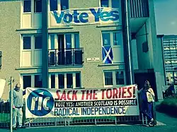 During the 2012–2014 Scottish independence campaign, RIC emerged from the Radical Independence Conference 2012 that was attended by almost 900 people.[1] During the run-up to the 2014 Scottish independence referendum, RIC conducted a voter registration drive.[3] This contributed to the unprecedented high voter registration of 84.59%.[4]