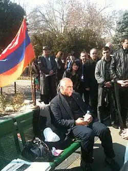 After regional unrest spurred Armenian merchants to demonstrate in Yerevan against a ban on street trading, Heritage and other political parties began to organize more ambitious rallies aimed at forcing broad governmental changes.[30] On 15 March 2011, hoping to draw attention to his party's cause, Hovannisian began a public hunger strike in a small protest camp in Yerevan's Freedom Square. The unity of the opposition was strained when Levon Ter-Petrosyan, leader of the Armenian National Congress, led demonstrators into Freedom Square two nights later and allegedly ignored Hovannisian and his supporters. Hovannisian ended his hunger strike on 30 March, but has remained active in protests against President Serzh Sargsyan and his government.[31][32][33]