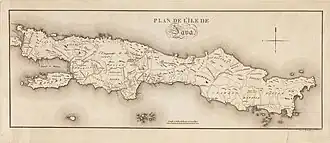 In 1804, at the start of the Napoleonic Wars, a powerful French squadron operating from Batavia harbour on the Dutch island colony of Java attacked a large and valuable British merchant convoy sailing from China near the Straits of Malacca in the Battle of Pulo Aura.[1] The French attack was a failure. Still, the threat posed to British trade passing through the Strait of Malacca by French or Dutch warships had been demonstrated. Determined to eliminate this threat, the commander of Royal Navy forces in the Indian Ocean—Rear-Admiral Sir Edward Pellew—ordered frigates to reconnoitre Dutch naval activity in the East Indies in mid-1806. The Dutch navy maintained a small squadron in the region under Vice-Admiral Pieter Hartsinck, principally intended to operate against pirates, consisting of three 68-gun ships of the line, three frigates, and several smaller vessels. Despite the obsolete nature of many of these ships, they nevertheless threatened British trade, and Pellew's frigates raided Dutch harbours and merchant shipping extensively during their patrols.[2]