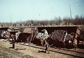 The Rail War (Russian: Рельсовая война, romanized: Relsovaya voyna; Belarusian: Рэйкавая вайна, romanized: Rejkavaja vajna; Ukrainian: Рейкова війна, romanized: Reikova viina) was the name for a World War II action of Soviet partisans and the German Kampfgruppen des NKFD as their auxiliary force in the Soviet Union, especially in German-occupied Byelorussia and Ukraine. The operations were carried out with the intention of disrupting German logistics via the destruction of rail lines, thus preventing the travel of equipment and manpower to the front.