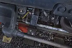 British Rail initially used converted diesel and electric multiple units.[12][13] Successor Network Rail built a fleet of dedicated sandite wagons which are hauled in top and tail formation by Colas Rail and, DB Cargo UK and Direct Rail Services locomotives. Network Rail also uses its MPVs. As at October 2021, 67 sets were operated.[14][15]