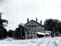 When the Boston and Worcester Railroad reached West Newton in April 1834, the hotel served as the line's first terminal, and as a transfer point to stagecoaches until the railroad was extended to Worcester the next year.[3] It was known as the Railroad Hotel and Terminal Hotel thereafter, even after the B&W built a dedicated station nearby.[2]