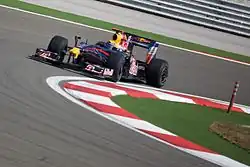 Shakedown tested by Vettel and Webber at Jerez in February 2009.[17][18][19] Raced by Vettel to wins at Shanghai (also pole position), Suzuka (also pole position), and Yas Marina (also fastest lap). Also raced by Vettel at Albert Park, Sepang, Bahrain, Barcelona-Catalunya (Spanish GP), Monaco, and Istanbul (also pole position), and then later at Spa-Francorchamps (also fastest lap), Monza, Marina Bay, and Interlagos.[16] |