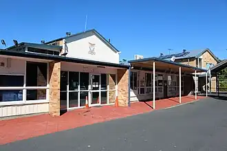 ![]() Block A (administration) in foreground and two-storey classrooms buildings Block B (left) and Block C (right) behind, 2018 | |