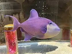 The redtoothed triggerfish (Odonus niger) is a triggerfish of the tropical Indo-Pacific area, and the sole member of its genus.[1] Some other common names include blue triggerfish, redfang triggerfish, redtoothed filefish, and Niger triggerfish.