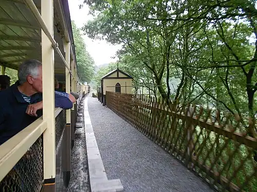 Rheidol Falls railway station is a railway station serving Rheidol Falls in Ceredigion in Mid-Wales. It is an intermediate station and request stop on the preserved narrow gauge 1 ft 11¾ in (603 mm) Vale of Rheidol Railway. This is one of the two stations of the railway, along with Rhiwfron, which has no road access.[1]