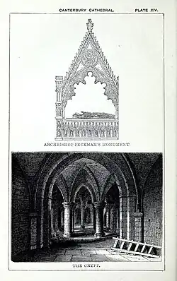 Canterbury Cathedral, Peckham Monument and crypt, illustration from Handbook to the cathedrals of England: Southern Division (1861)