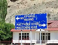 Road sign at the roundabout on the Dushanbe-Khujand highway