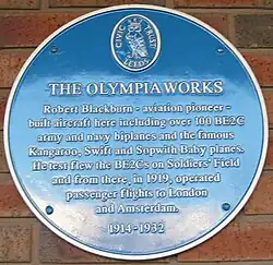 Plaque at what is now Tesco, Roundhay Road, Leeds. 53°49′24″N 1°30′39″W / 53.82323°N 1.5108°W / 53.82323; -1.5108 (Olympia Works plaque)