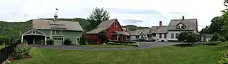 The house was built about 1850 by Joseph Taylor, and is adorned with modest elements of Victorian Gothic trim. The property was purchased in 1883 by Henry Southwick, the town blacksmith. It was here that he (and afterward his son) carried on that business. In 1934 Robert Strong Woodward purchased the property. Woodward, a paraplegic due to an accident with a revolver when he was 21 years old.[4] He made significant changes to the property to accommodate his wheelchair, moving the chicken coop to close a gap between the house and the blacksmith shop. The blacksmith shop and carriage house were moved a short distance to be directly next to each other, and the barn was moved from the south side of the house to the north, in order to provide an unobstructed view down the valley. In fact, moving the barn and chicken coop gave the entire south side of the house, from his bedroom to studio balcony a vantage point from which to paint. The studio has been maintained in virtually the same condition since Woodward's death in 1957 by the recipient of his estate.[3]