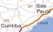 The Rodovia Régis Bittencourt is a section of the BR-116 that connects the cities of Taboão da Serra and Curitiba, Paraná. It is considered one of the most dangerous highways of Brazil, due to the high number of accidents.[1] It also leads the number of ambiental accidents in the state of São Paulo.